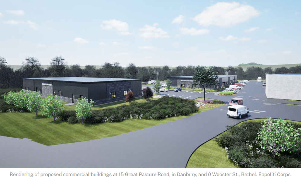 According to the Hartford Business Journal, Eppoliti Industrial Realty LLC plans to develop four new commercial buildings totaling 60,425 square feet on land spanning the Danbury–Bethel line, with 50,675 square feet proposed at 15 Great Pasture Road in Danbury and 9,750 square feet at 0 Wooster St. in Bethel . The project covers 11.9 acres in Danbury and 2.2 acres in Bethel, supplementing an existing 74,442‑square‑foot commercial building on the Danbury parcel, where a smaller structure will be demolished.